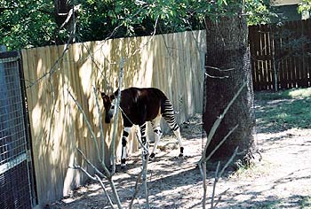This animal is a cross between a giraffe and a zebra...belongs in the giraffe family.